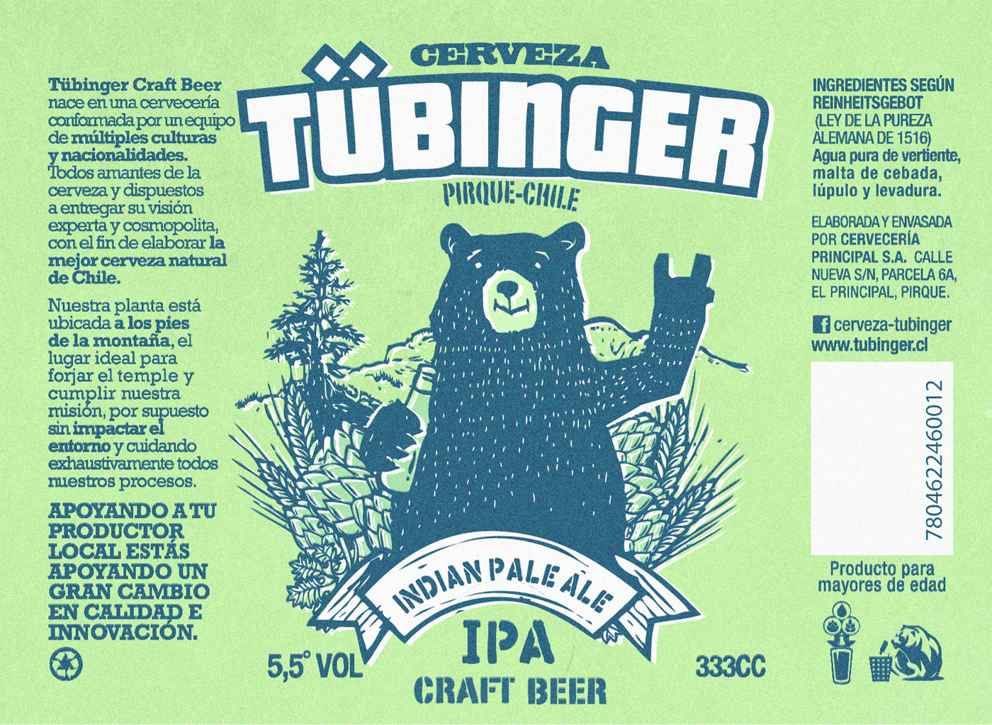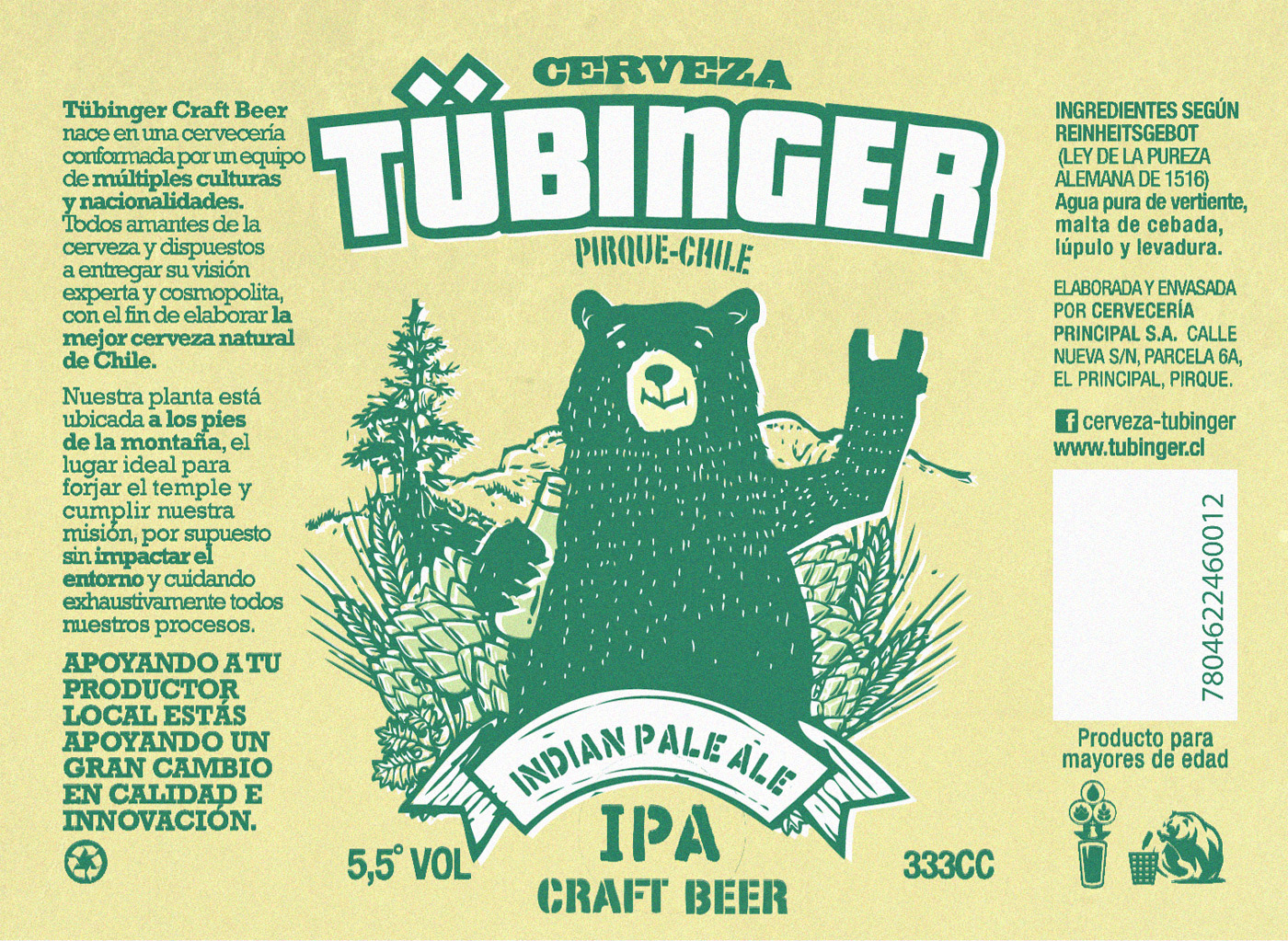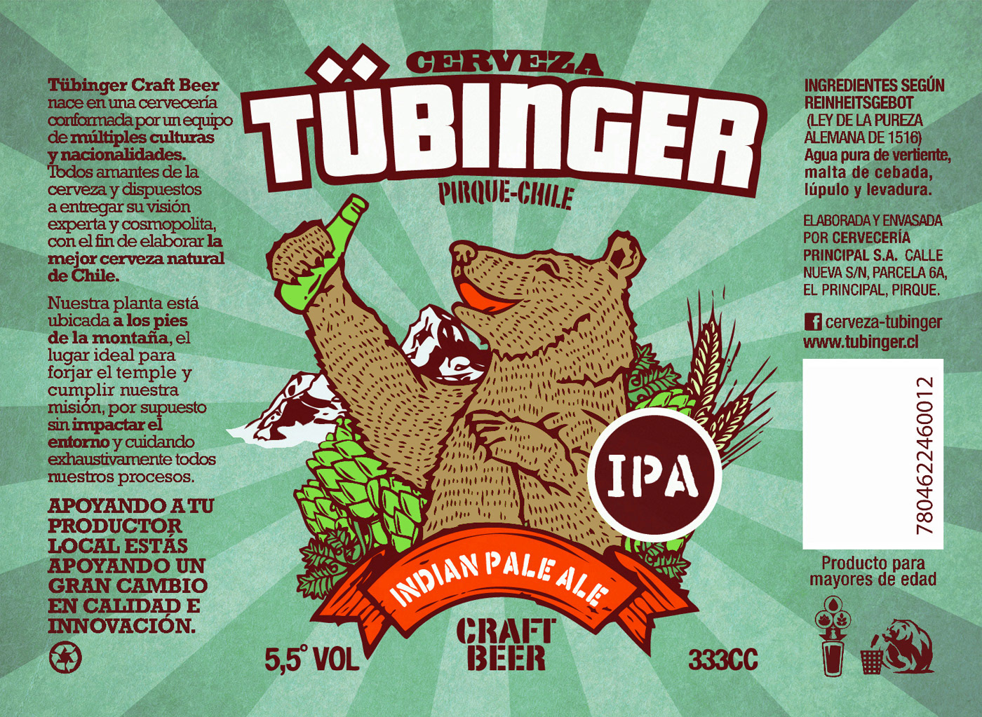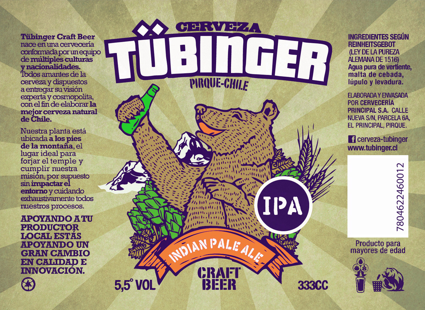 Variantní návrhy etiket piva typu Indian Pale Ale pro pivovar Tübinger v Chile v rámci finále mezinárodní soutěže.